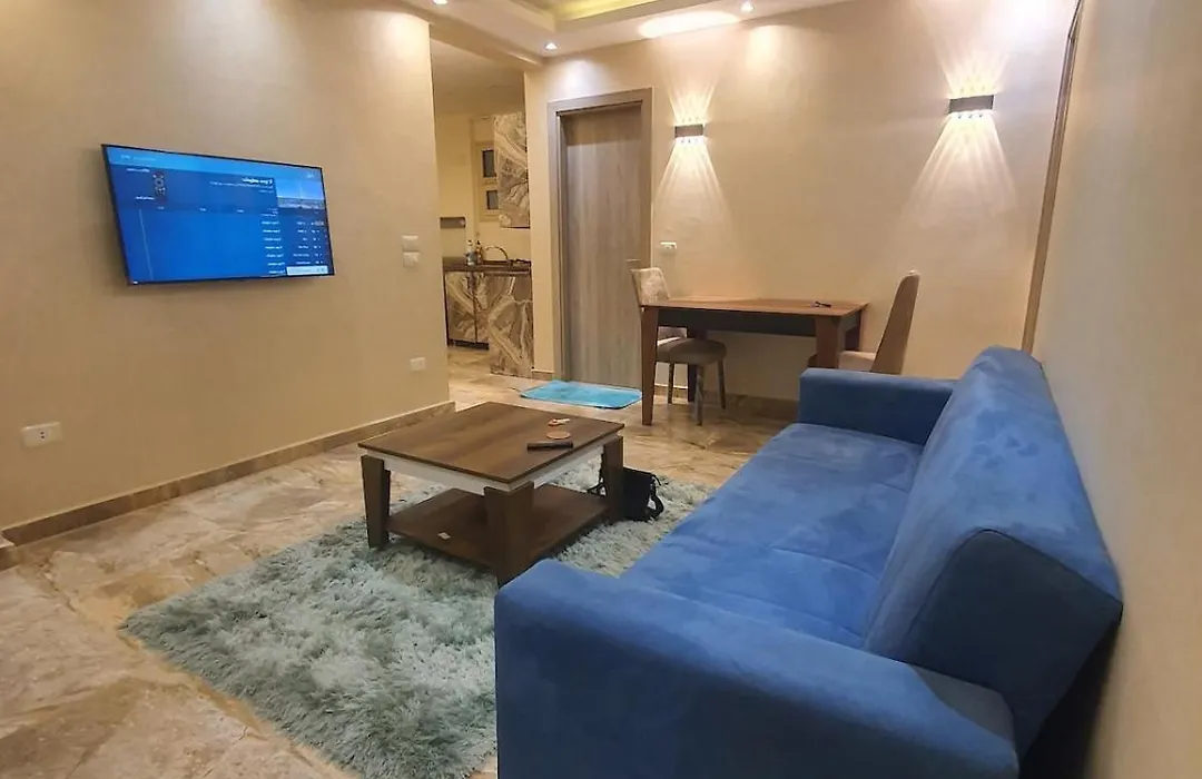 Luxury Studio In Cairo, Maadi has a living room and a fully equipped kitchen, and comforts such as air conditioning.